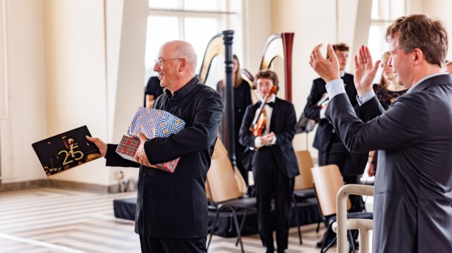 Na deze wervelwind van een reis keerde het orkest terug naar Nederland. In Voormalig Zendstation Radio Kootwijk op de Veluwe bracht het orkest twee concerten als onderdeel van de Muziekzomer Gelderland. Hier vierden we ook het 25-jarig jubileum van Jurjen Hempel als dirigent van het JON. Wat een feest! Hij werd toegesproken door leden uit het orkest, door directeur Ewout van Dingstee en nam cadeaus in ontvangst. Één cadeau was wel heel bijzonder - bij de toegift van het concert zette het orkest weliswaar de eerste noot in van Elgars Nimrod, maar die veranderde plots in een speciaal bewerkte versie van het nummer Feeling Good, één van Jurjens favorieten.